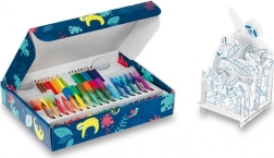 Deze praktische creatieve koffer biedt kinderen vanaf 5 jaar alles wat ze nodig hebben voor urenlang knutselplezier. Dankzij de gevarieerde selectie schrijf- en tekenmaterialen kunnen kinderen verschillende technieken uitproberen, hun creativiteit ontwikkelen en originele kunstwerkjes maken. Er is ook een kartonnen doos om in te kleuren die na het vouwen dienstdoet als houder voor potloden en kleurpotloden.