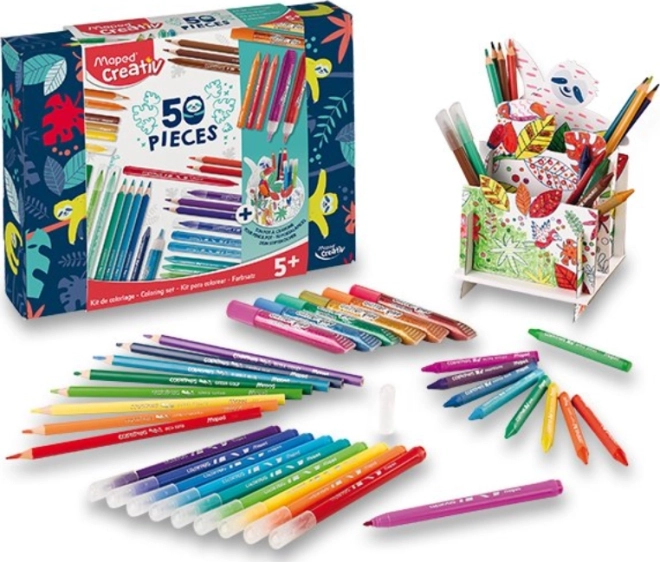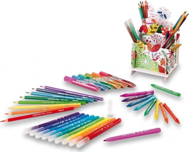 Ontdek een complete creatieve set in een praktische koffer van MAPED, die de fantasie en fijne motoriek van kinderen stimuleert. Je vindt er kleurpotloden, waskrijtjes, stiften, glitterlijm en zelfs een pennenhouder om in te kleuren. Ideaal voor thuis, de peuterspeelzaal/kleuterschool en onderweg – alles netjes bij elkaar en klaar om te knutselen.