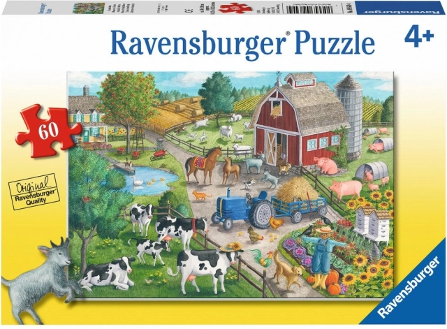 Ontdek het plezier van puzzelen met de kinderpuzzel van RAVENSBURGER met als thema het leven op de boerderij. Ideaal voor beginnende puzzelaars, met 60 stukjes, hoge kwaliteit en een formaat na het leggen van ca. 36 × 26 cm.