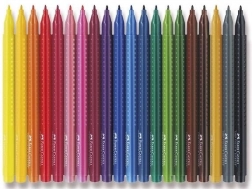 Ergonomische set stiften Faber-Castell Grip met 20 stuks, met heldere en opvallende kleuren, waterbasis-inkt die uit de meeste textiel uitwasbaar is en een comfortabel driehoekig lichaam met GRIP-zone. De duurzame punt kan hoge druk aan en de kunststof box maakt dragen en opbergen eenvoudig.