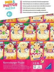 Geniet van eindeloos plezier met de kinderpuzzel RAVENSBURGER Mix & Match. In de verpakking vind je drie afbeeldingen van 24 stukjes die je klassiek volgens het voorbeeld kunt leggen of vrij met elkaar kunt combineren om grappige boerderijfiguurtjes te maken. Ideaal voor de ontwikkeling van fantasie, fijne motoriek en geduld bij kinderen.