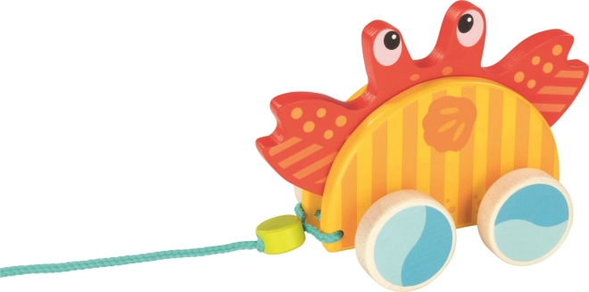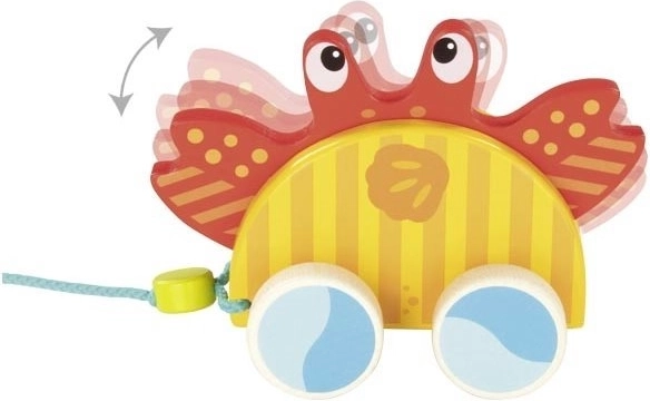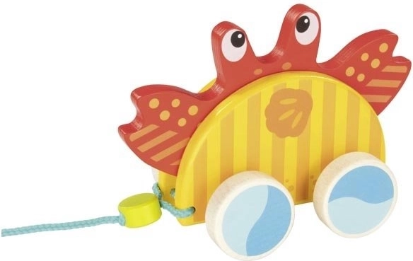 Deze kleurrijke trekspeelgoedkrab is gemaakt van hoogwaardig massief hout, wat zorgt voor een lange levensduur en veiligheid voor kinderen. De wieltjes van het speelgoed doen denken aan zeegolven, waardoor het een speels en opvallend onderdeel van de kinderkamer is.