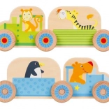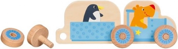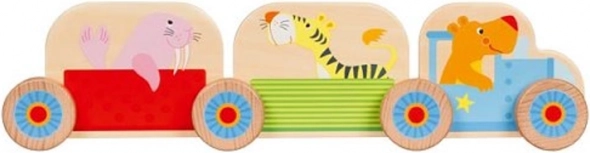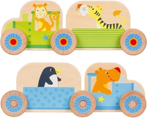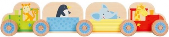 De houten bouwset Mijn kleine treintje is een perfecte manier om je kind kennis te laten maken met de magie van bouwspeelgoed. De set bestaat uit 16 onderdelen, waaronder twee locomotieven en twee wagonnetjes die dieren op uitstapje meenemen.