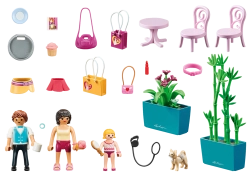 In de doos vind je 3 gedetailleerde figuurtjes, zitplaatsen en meer dan 10 thematische accessoires – bloemen, een hondje en een dienblad ontbreken niet. De set is ideaal als zelfstandig spel of om je stedelijke City Life-collectie uit te breiden.