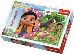 Schattige Trefl kinderpuzzel met Wissper-motief, met 30 stukjes voor de eerste puzzelervaringen. Ideaal voor kinderen vanaf 3 jaar, met een afmeting na het leggen van 27 × 20 cm en hoge kwaliteit voor zowel plezier als vaardigheidsontwikkeling.