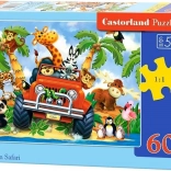 Deze kinderpuzzel brengt een vrolijke safari-illustratie die uitnodigt om vormen en kleuren te ontdekken. Dankzij 60 stukjes en het prettige formaat van de delen is hij ideaal voor kleuters en jongere schoolkinderen. De uiteindelijke afbeelding heeft een afmeting van 32 × 23 cm, waardoor hij gemakkelijk op tafel of onderlegger te leggen is.