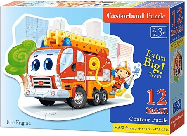 Kleurrijke kinderpuzzel met een brandweerauto voor de allerkleinsten. 12 grote stukjes zijn makkelijk vast te houden en te leggen; na het leggen ontstaat een afbeelding van 47 × 33 cm. Bevordert concentratie, geduld en fantasie – een geweldig cadeau voor kleine ontdekkers.