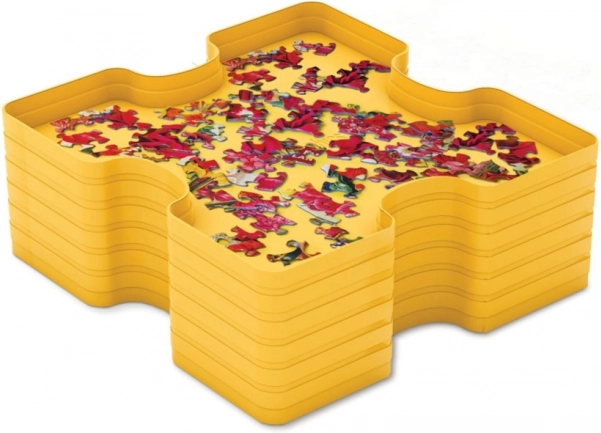 Praktische puzzelsorteerder van het merk EUROGRAPHICS voor comfortabel en overzichtelijk leggen. Bevat 6 kunststof schaaltjes in de vorm van puzzelstukjes met een afmeting van 20 × 20 cm, die sorteren op kleur en vorm mogelijk maken. De schaaltjes zijn stapelbaar en kunnen eenvoudig terug in de doos worden opgeborgen, waardoor ze ruimte besparen en voorkomen dat stukjes kwijtraken. Capaciteit tot 1000 stukjes.