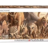 Geniet van een reis naar de wereld van dinosaurussen met deze gedetailleerde panoramische puzzel. Ideaal voor dinoliefhebbers en puzzelenthousiastelingen.