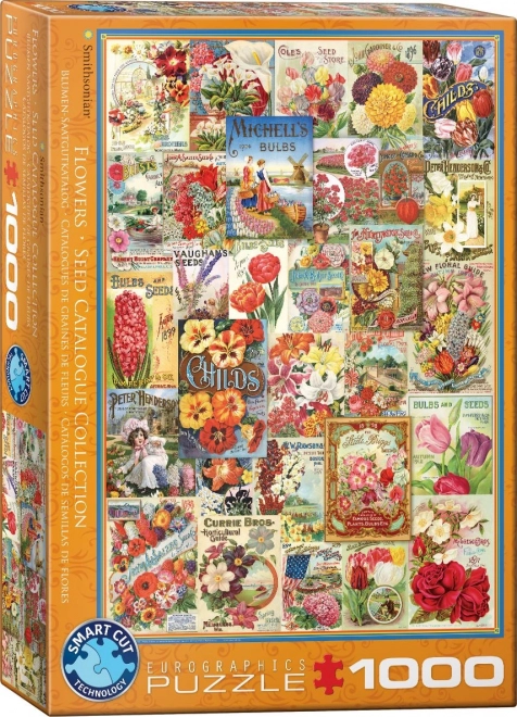 Ontdek uitdaging en schoonheid met deze hoogwaardige EUROGRAPHICS puzzel met het motief van een catalogus van bloemzaden, 1000 stukjes. Dankzij de ongewone vormen van de stukjes en de niet-standaard stans geniet je van een moeilijkere en leukere legervaring. De compacte vierkante doos en het formaat na het leggen van ca. 48 × 68 cm maken het een geweldig cadeau voor liefhebbers van puzzels en bloemen.