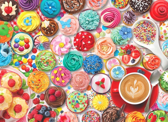 Stijlvolle puzzel met het motief Cupcake-feest, perfect voor liefhebbers van zoete onderwerpen en hoogwaardige afwerking. Het metalen blik met geëmbosseerde deksel oogt premium en is ook na het leggen handig te gebruiken – als opbergblik in de keuken of als decoratief accessoire.