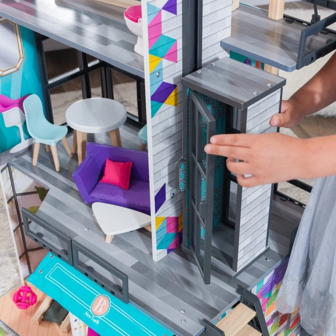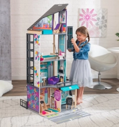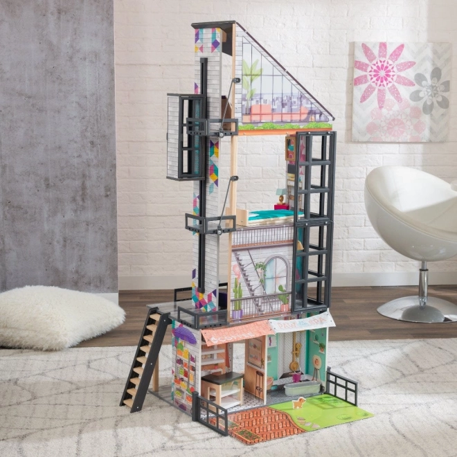 Ontdek stedelijke avonturen met het KidKraft Bianca City Life poppenhuis. Deze design “loft” die aan een wolkenkrabber doet denken, combineert een modern uiterlijk met een duurzame houten afwerking. Kleurrijke grafische achtergronden, functionele elementen en de open 360° toegang stimuleren samen spelen met meerdere kinderen en eindeloze verbeelding.