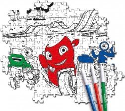 Geniet van dubbel zoveel plezier met de dubbelzijdige Ricky Zoom-puzzel met 104 stukjes van Clementoni. Leg aan de ene kant een klassiek motief en kleur aan de andere kant je eigen kunstwerk in met de meegeleverde stiften. Het leggen van puzzels ontwikkelt de fijne motoriek en het observatievermogen.