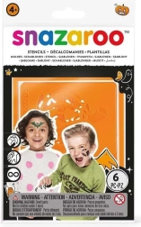 Set van zes SNAZAROO-sjablonen voor eenvoudig en snel schminken van gezicht en lichaam. Thema-motieven voor Halloween, zelfklevende achterkant voor stabiliteit, flexibel materiaal voor aansluiting op rondingen en herbruikbaar dankzij afwasbare uitvoering.