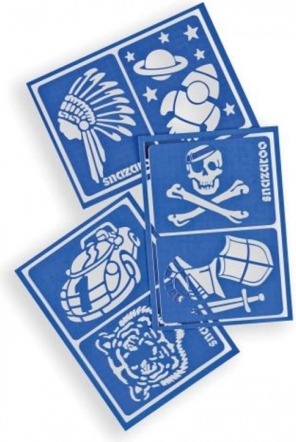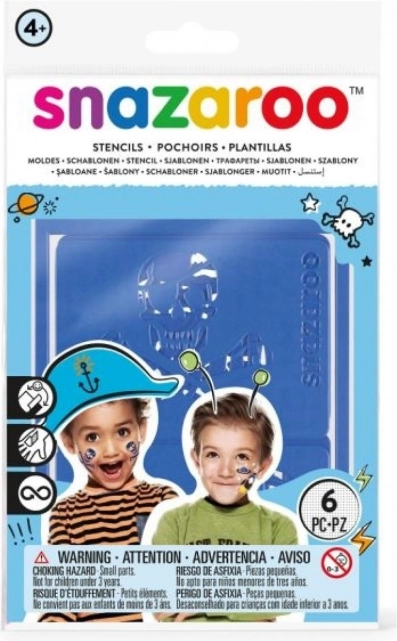 Ontdek de avontuurlijke set SNAZAROO-schablonen met piraten-, inheemse- en ruimte-thema’s, die jouw facepainting naar een hoger niveau tillen. De schablonen hebben een zelfklevende achterkant waardoor ze stevig op hun plaats blijven, en het flexibele materiaal past zich aan de contouren van gezicht en handen aan.