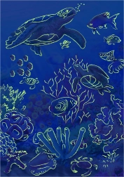 Duik in de mysteries van de onderwaterwereld met onze unieke puzzel met een neoneffect. Na het leggen hoef je de puzzel slechts kort aan licht bloot te stellen en in het donker zal hij oplichten. Dit magische moment betovert kinderen en verbetert tegelijk hun visuele waarneming.