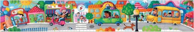 Panoramische kinderpuzzel met het thema stadsvervoer die puzzelen combineert met het vertellen van verhalen. Biedt prachtige kleurrijke illustraties, makkelijk puzzelen voor de allerkleinsten en een indrukwekkende lengte van bijna 1 meter. Dankzij slim ontworpen stukjes ondersteunt het ook het eerste tellen en de ontwikkeling van woordenschat.