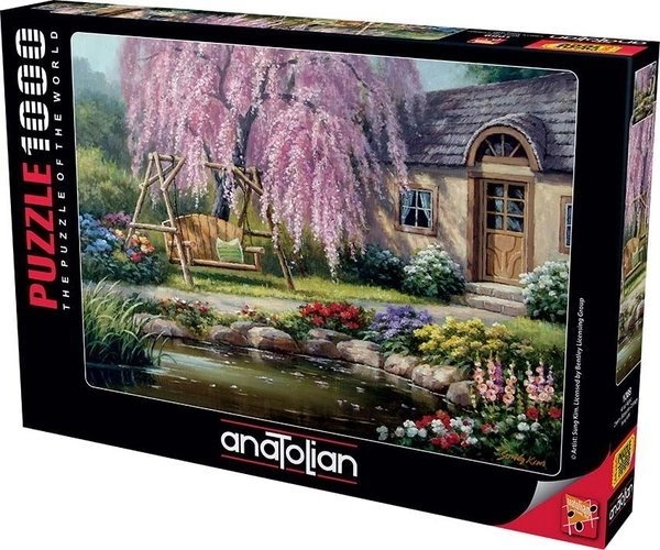 ANATOLIAN Puzzel Het Huisje bij de Kersenboom biedt plezier en ontspanning voor iedere puzzelliefhebber. Deze puzzel met 1000 stukjes wordt geleverd met een praktische standaard voor het deksel van de doos, die als voorbeeld dient.