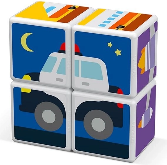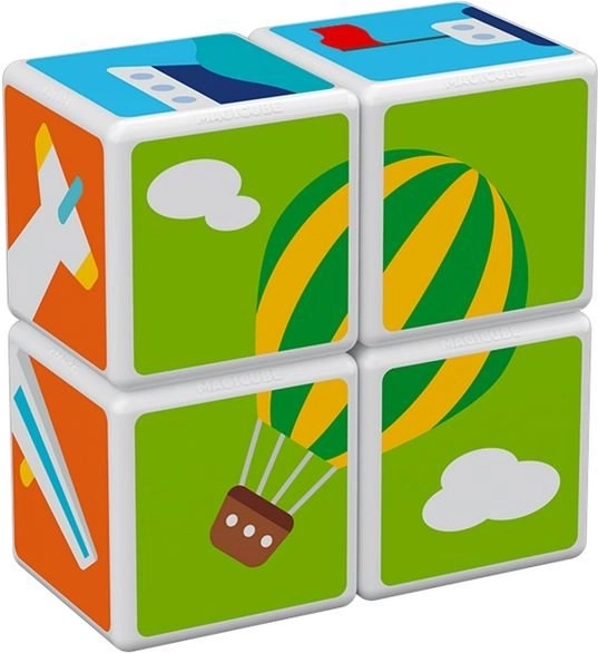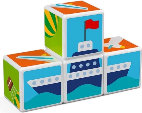 GEOMAG Magicube Printed Transport is een slimme magnetische bouwset die spelen en leren combineert. Vier bedrukte blokken met vervoersmotieven en drie dubbelzijdige kaarten nodigen kinderen uit om auto’s, vliegtuigen, raketten en andere afbeeldingen te bouwen. Dankzij magneten die op elke rand werken is bouwen intuïtief en veilig.