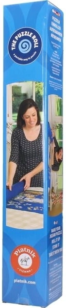 Praktische rolbare puzzelmat van PIATNIK voor puzzels tot 1000 stukjes, waarmee je veilig kunt opbergen en makkelijk kunt vervoeren terwijl je nog bezig bent. De vilten mat in het blauw met afmeting 100 × 60 cm biedt ruimtebesparing, bescherming van de stukjes en eenvoudig gebruik dankzij de koker en de bevestigingsbanden.