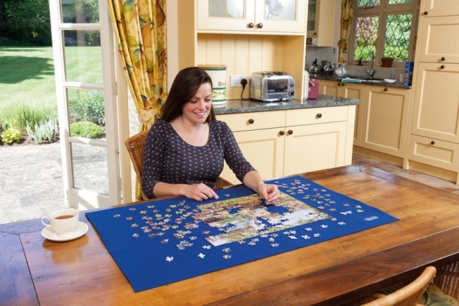 Het vilten oppervlak in blauw houdt de stukjes op hun plek, beschermt ze tijdens opslag en transport en biedt een contrasterende achtergrond voor beter overzicht tijdens het puzzelen. De mat is makkelijk te onderhouden – je kunt hem op de laagste temperatuur strijken via een dunne doek en met de hand wassen in koud water (niet wringen, niet in de droger).
