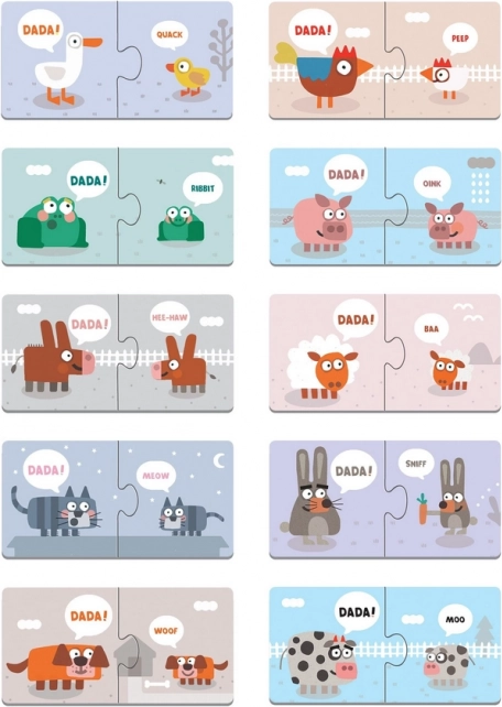 Deze set bevat 10 afzonderlijke mini-puzzels, elk bestaande uit 2 stukjes – ideaal voor kinderen die net met puzzelen beginnen. De stukjes zijn groot, stevig en gemakkelijk vast te houden, zodat kinderen prettig kunnen puzzelen en zich kunnen richten op het ontdekken van nieuwe woorden en plaatjes.