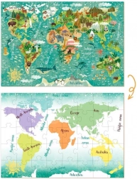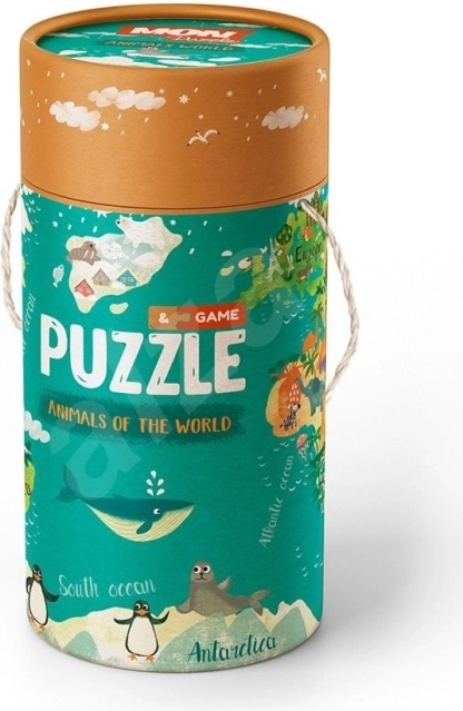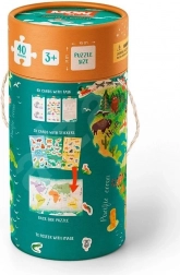 Ontdek een speelse set voor kinderen vanaf 3 jaar die dubbelzijdige puzzels met 40 stukjes combineert met opdrachtkaarten, een poster en stickers. De cadeautube zit vol uren plezier en stimuleert tegelijk de fijne motoriek, het logisch denken en het leren kennen van dieren van over de hele wereld.