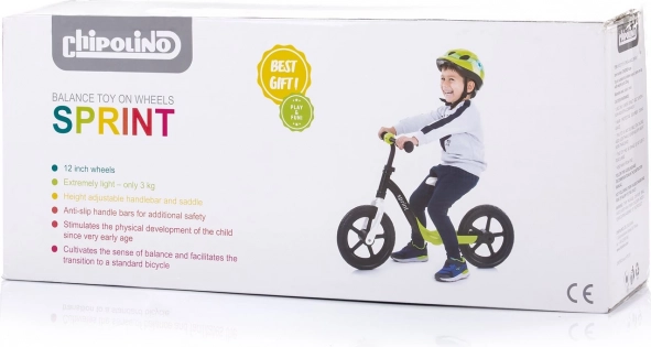 De lichte en stabiele loopfiets CHIPOLINO Sprint helpt kinderen op een natuurlijke manier balans, coördinatie en gevoel voor snelheid te trainen. Dankzij de 12" wielen met massieve banden, het verstelbare zadel en stuur en de antislipgrepen genieten kleine rijders van een veilige en leuke rit. Inclusief bel en praktische voetsteunen om de voeten tijdens het rijden te laten rusten.