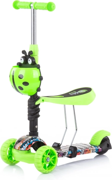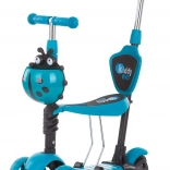 De 3-in-1 kinderstep Kiddy Evo groeit met je kind mee – van loopfiets via duwen door de ouder tot zelfstandig steppen. Biedt een stabiel driewielig chassis, verstelbaar stuur en zadel, voorwielen met gekleurde LED-verlichting en een antislip voetplaat voor veilig en leuk buitenrijden.