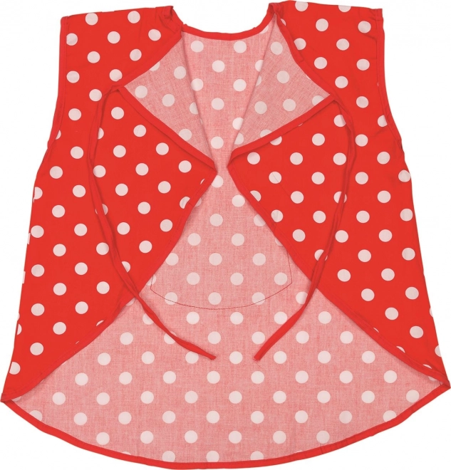 Praktisch kinderschort in het rood met witte stippen beschermt kleding tijdens knutselen, schilderen en koken. Heeft comfortabele striksluiting op de rug, een voorzakje voor kleinigheden en een ideale maat voor kinderen op school en thuis.