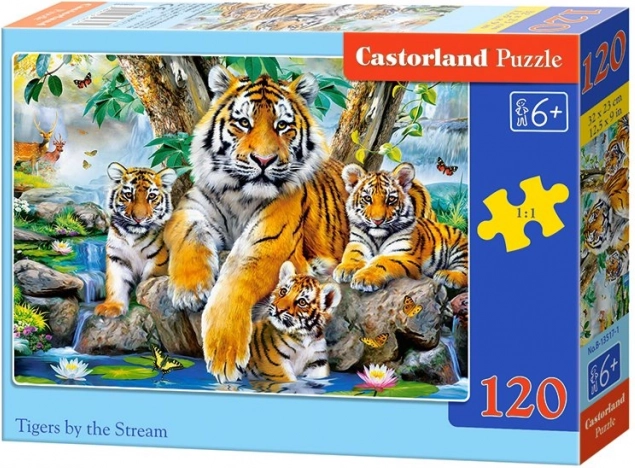 Maak een schitterend beeld van de Tijgers bij de beek met deze puzzel van 120 stukjes. Ideaal voor kinderen vanaf 6 jaar die op zoek zijn naar meer uitdaging.