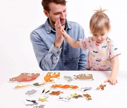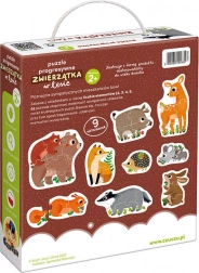 Puzzelen helpt kinderen hun woordenschat uit te breiden (benoemen van dieren, kleuren en lichaamsdelen), traint de oog-handcoördinatie en stimuleert de concentratie. Ouders kunnen eenvoudige spelletjes en vragen toevoegen, dierengeluiden nadoen of samen informatie zoeken over het leven in het bos.