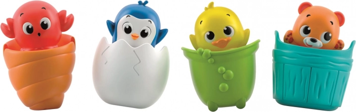 Dompel het speeltje onder en kijk hoe het diertje tevoorschijn komt. Wanneer je het eruit haalt, stroomt het water weg door de openingen en verstopt het eendje zich weer – eindeloos plezier bij ieder badmoment.