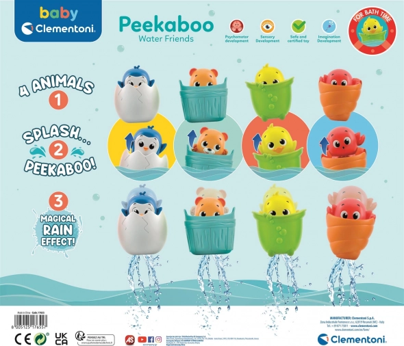 Dit speelse eendje uit de Baby Clementoni-collectie brengt interactieve fun in bad. Dompel het onder water en zie hoe het uit zijn veilige “schuilplaats” tevoorschijn komt. Til je het op, dan loopt het water weg via kleine openingen en verstopt het eendje zich opnieuw – zo beleven kinderen steeds weer een verrassingsmoment.