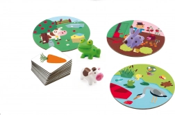 Het spel Djeco Kleine Associatie is een ideale keuze als eerste bordspel. Kinderen koppelen dieren aan omgevingen of voorwerpen op kaartjes – bijvoorbeeld een konijn aan een wortel, een visje aan de vijver of een lieveheersbeestje aan de weide. Het eenvoudige principe stimuleert snelle beslissingen en ontwikkelt op natuurlijke wijze het begrip van de wereld om hen heen.