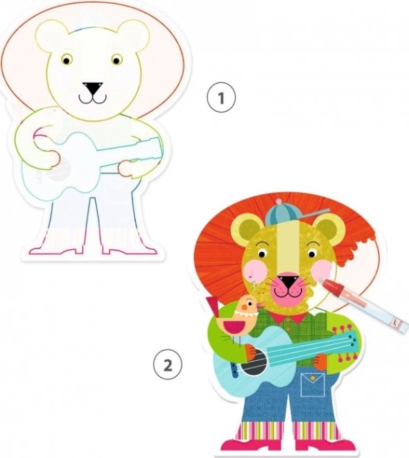 Ontdek het knoeivrije plezier: vul de meegeleverde pen met water en kleur de witte vlakken op de kaartjes in. Kleuren en patronen verschijnen als bij toverslag en verdwijnen weer zodra het droog is, zodat kinderen het spel steeds opnieuw kunnen herhalen.