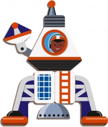 In de verpakking vind je 52 magnetische onderdelen en 18 kaartjes met voorbeelden van ruimtevoertuigen. Kinderen kunnen namaken volgens de kaarten of eigen combinaties creëren. De magneten zijn ook te gebruiken op andere magnetische borden of oppervlakken.