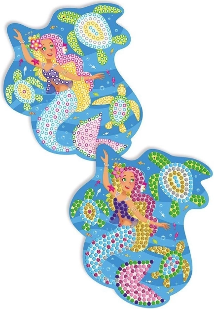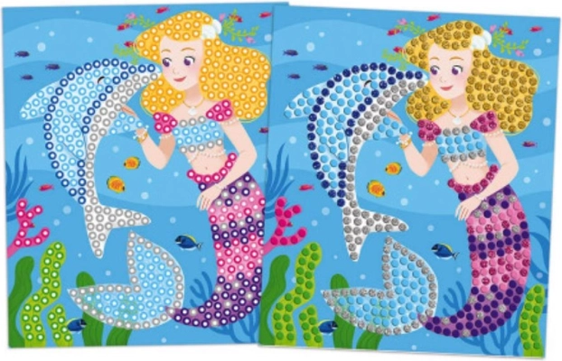 Creatieve set voor kinderen vanaf 5 jaar die de fijne motoriek en verbeelding stimuleert. Bevat 5 prachtige afbeeldingen van zeemeerminnen en dolfijnen en 10 vellen glinsterende en gekleurde stickers om mozaïeken te maken. Eenvoudig plakken, kleurrijke motieven en langdurig speelplezier thuis en onderweg.