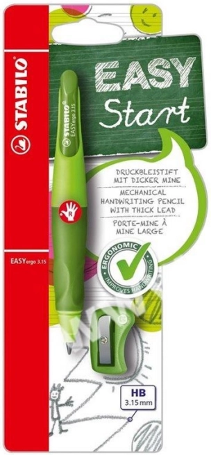 Het potlood is uitgerust met een praktische drukmechaniek en wordt op blister geleverd met een ergonomische puntenslijper. Na uitschrijven kan eenvoudig worden nagevuld met originele vullingen voor STABILO EASYergo 3,15. Ideaal voor op school en voor thuis oefenschrijven.