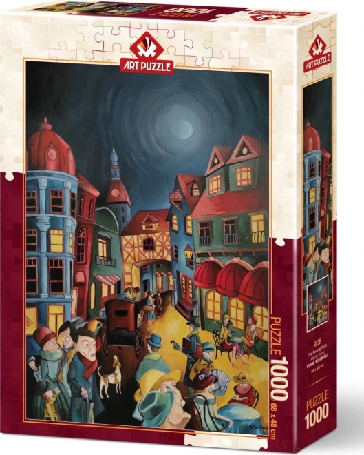 Ontdek de sfeervolle uitstraling van de avondlijke stad en neem een moment van rust met een puzzel die zowel beginners als ervaren puzzelaars zal bekoren. Dankzij de zorgvuldige stans en de kwaliteit van het karton passen de stukjes perfect in elkaar en komt het uiteindelijke beeld prachtig tot zijn recht als decoratie.