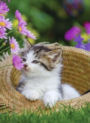 Tip: De gelegde afbeeldingen van ca. 36 × 49 cm passen perfect in standaard lijsten – creëer je eigen galerij van kittens met een landelijke sfeer.