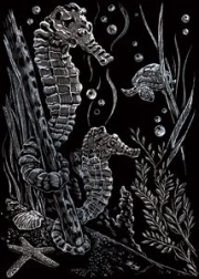 - Inhoud van de verpakking: 12 krasafbeeldingen (3 gouden, 3 zilveren, 3 holografische, 3 regenboog), 12 blanco vellen, plastic kraspen met metalen punt (ca. 14,5 cm)