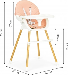 De veelzijdige 2-in-1 kinderstoel van ECOTOYS groeit met je kindje mee. Dankzij de eenvoudig afneembare poten en voetensteun verander je hem in een mum van tijd van een hoge kinderstoel in een lage stoel voor zelfstandig eten, tekenen of spelen. Het praktische blad met 3-traps verstelling en de verhoogde rand helpen rommel onder controle te houden.