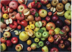 De afbeelding op de puzzel toont een rijke variatie aan appelrassen, wat bij het leggen zorgt voor een esthetische beleving.