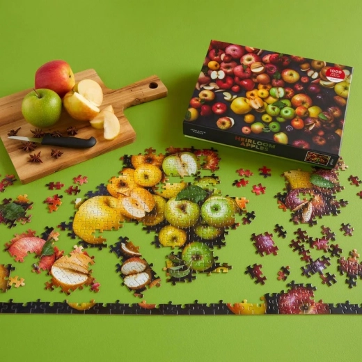 Vul je vrije tijd met het leggen van een puzzel met 1000 stukjes die de vreugde van de herfstoogst rechtstreeks in je huis brengt. Dankzij de stevige verpakking van gerecyclede materialen en hoogwaardige print met niet-giftige inkten is deze puzzel een ideaal ecologisch cadeau. Je geniet niet alleen van plezier, maar leert ook meer over de diversiteit van appels.