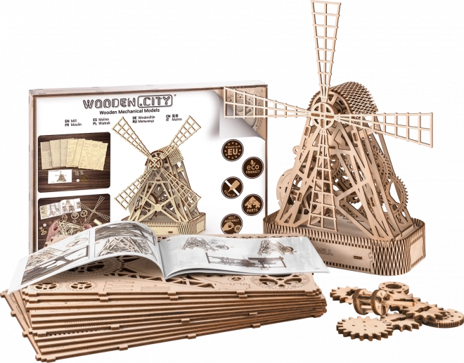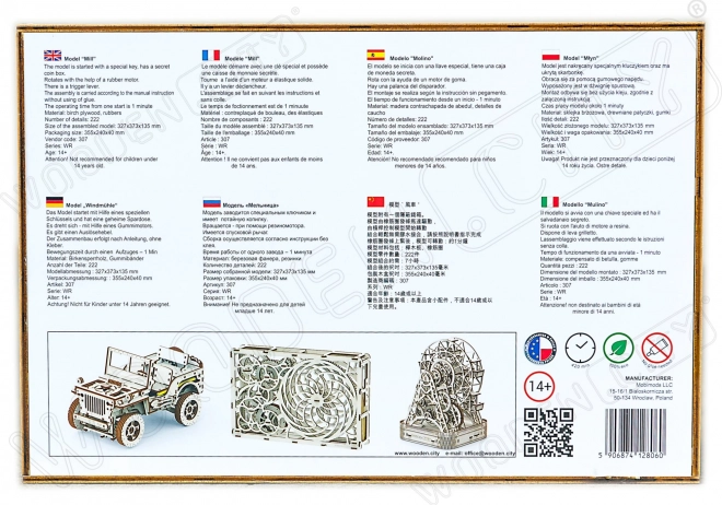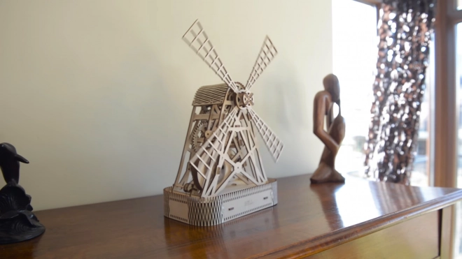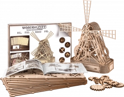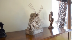 Houten 3D-puzzel Molen is meer dan alleen een bouwpakket - het is een echt mechanisch model dat na montage een functioneel kunstwerk wordt. Zonder lijm of gereedschap stel je het model samen uit ecologisch berkenmultiplex dat de geheimen van windmolens verbergt.