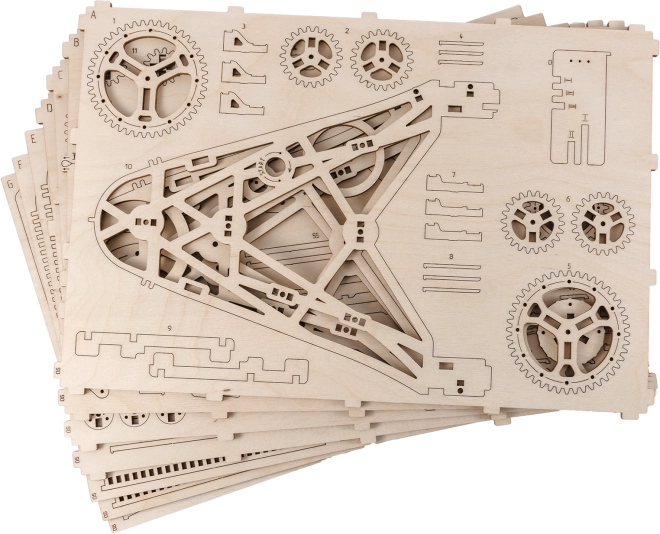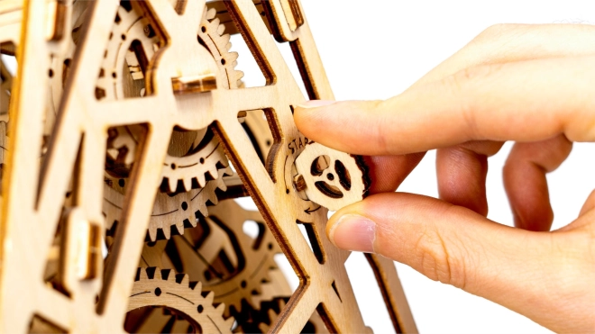 Ondanks de complexiteit is de montage eenvoudig en buitengewoon fascinerend. Voor nauwkeurige en soepele werking raden we aan de assen en tandwielen te verzorgen met was. Deze puzzel is het perfecte cadeau voor liefhebbers van mechanica en de natuurlijke schoonheid.