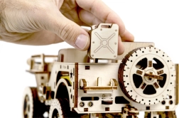 Elk onderdeel van het model, met een afmeting van ongeveer 27,9 x 15,1 x 14,8 cm, is laser-gesneden voor nauwkeurige en soepele montage. Breng tot slot was aan om een soepele werking van de tandwielen en assen te garanderen. Voor de montage zijn een afbreekmes, schaar, schuurpapier en een kaars nodig (uitrusting niet inbegrepen).