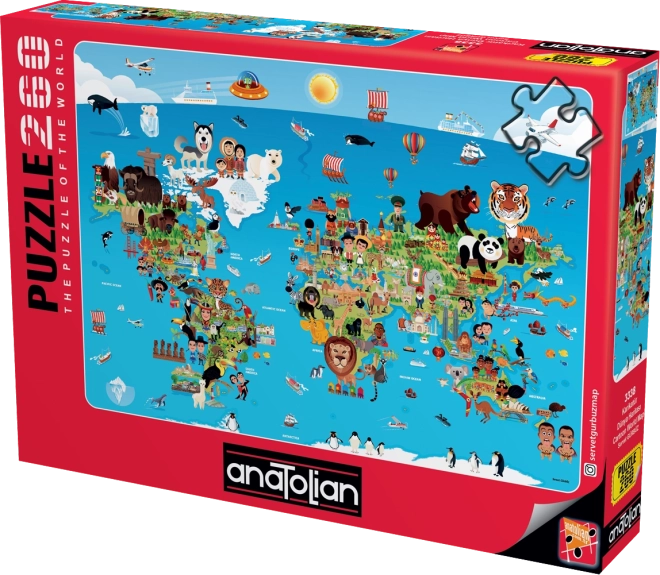 Zoek je een puzzel die plezier en educatie combineert? De getekende wereldkaart van ANATOLIAN brengt schattige illustraties van continenten, dieren en bezienswaardigheden met Engelstalige bijschriften, zodat je tijdens het puzzelen op een natuurlijke manier ook een vreemde taal oefent. Met 260 stukjes is hij ideaal voor schoolkinderen en voor het hele gezin.