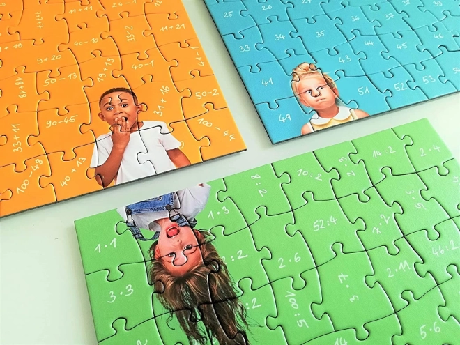 Leuke en leerzame puzzels voor kinderen die het leggen van afbeeldingen combineren met het oefenen van rekenen. De set bevat drie losse puzzels die cijfers, optellen en aftrekken en vermenigvuldigen en delen ontwikkelen. Ideaal voor de eerste stappen in wiskunde en voor het trainen van oriëntatie in een raster en op de getallenlijn.